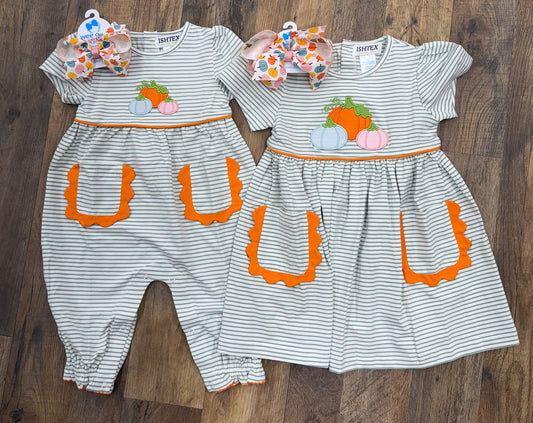 Ishtex Pumpkin Appliqué Girl Romper